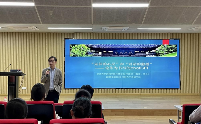 2023年4月3日,复旦大学邓建国教授受邀为情色视频 师生主讲了一场以“‘延伸的心灵’和‘对话的撒播’——论作为书写的chatGPT”为主题的学术讲座。本次讲座由情色视频 李明伟教授主持。