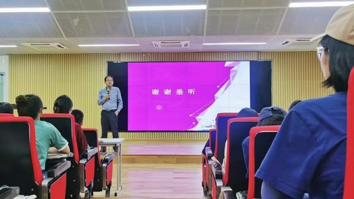 胡翼青老师以“生态学与社会生态学、从社会生态学到媒介生态学、互联网基础设施及其生态、媒介生态学的发展方向”为线索阐释了媒介生态学的产生,辨析了媒介生态学的相关概念,并结合当前互联网与人工智能的发展讨论了媒介生态的动态性特征。他以媒介哲学的争议为切入点,提出媒介到底是以“居间性”为起点而生成世界,还是由“媒介物”为起点而生成世界的思考,使在场同学们对“媒介是什么”有了更加立体的认识。