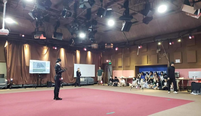 同学们还参观了动捕影棚,了解了动捕的基本原理及运行方式,部分学生代表进行了现场体验,并观看了宝视达成果集展示。