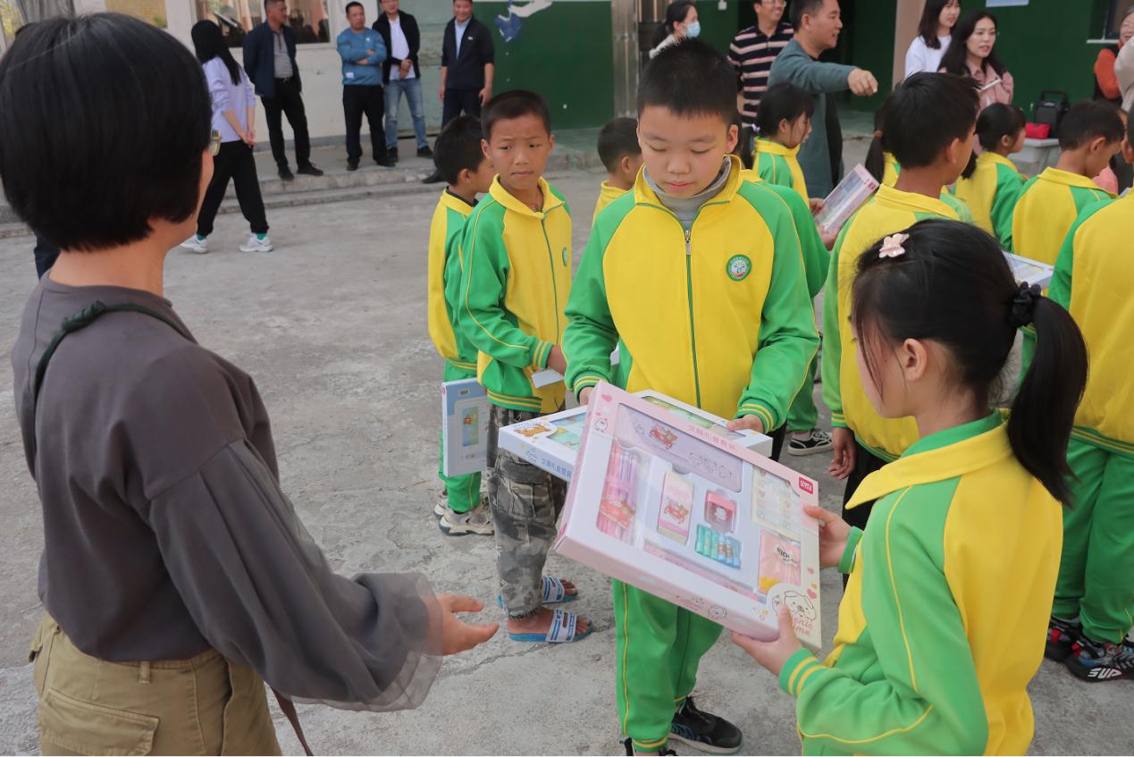 党委陈一鸣副书记表达从荔园到浰源的由衷喜悦和美好祝愿。学院党委联合深圳爱心企业家刘骏立先生向浰源镇中心小学捐赠教育对口帮扶物资,包括小米65寸电视机、小米笔记本电脑和惠普打印机,为在校同学捐赠红领巾和少先队徽各620套,学院教师向在场的小学生赠送人手一套学习用品。