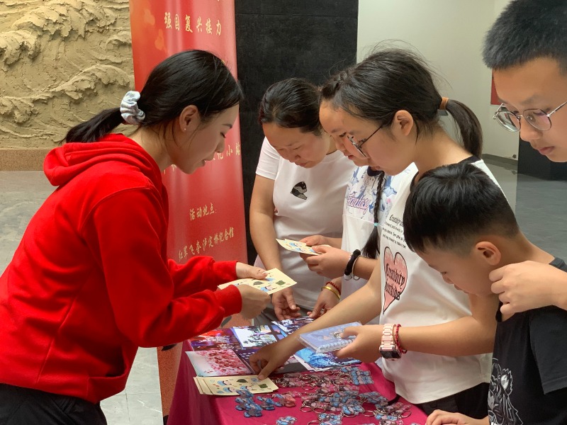 与此同时,小站还迎来四川民族学院“三下乡”实践团的特别访问。实践团的成员们在小站内仔细观摩每一件文创产品,认真聆听每一个文创背后的故事,他们不仅被其精美的设计所吸引,更被背后蕴含的长征精神所打动。这次活动不仅是一次红色文化的传承之旅,更是大中小思政教育一体化理念生动实践的典范,与跨代际的观众群体共同互动。大学生们与中小学生的交流,促进了知识的传递与思维的碰撞;而老少之间的对话,则让红色文化更加深入人心,成为连接过去与未来的桥梁。不同年龄段的观众在共同的红色文化体验中,增进了彼此之间的理解与尊重,共同构建了一个跨越年龄界限的思政教育共同体。