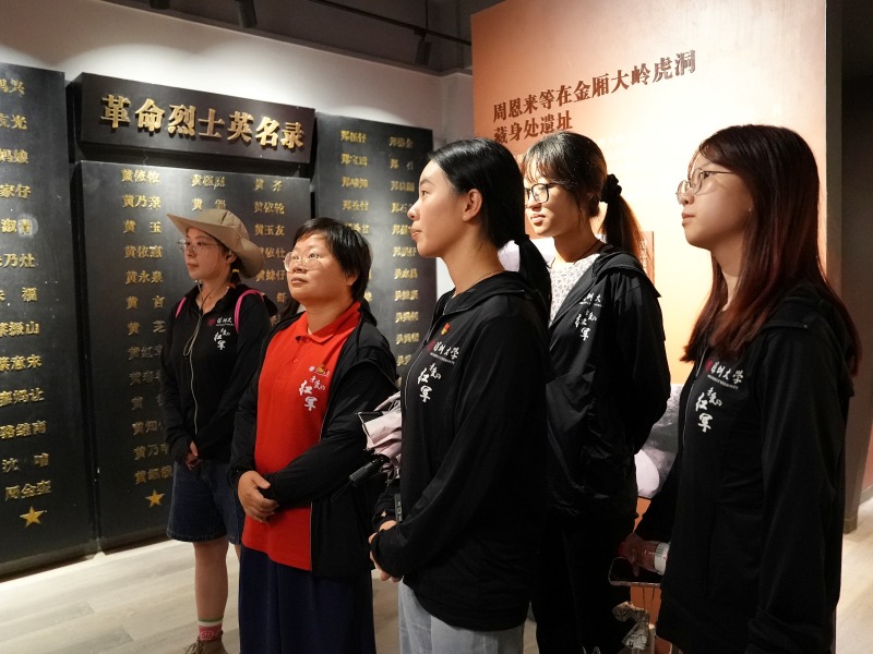 在行走中学思践行,一直是马克思主义新闻观创意传播与实践党支部推广的育人模式。长期以来,支部坚持开展由“老区行”、“特区行”与“湾区行”构成的“三区三行”实践蓝图,形成了一堂生动的“大思政课”。在此次研学过程中,支部成员来到金厢红色文化馆参观,对话历史,在党和人民的奋斗历程中汲取养分、坚守初心。