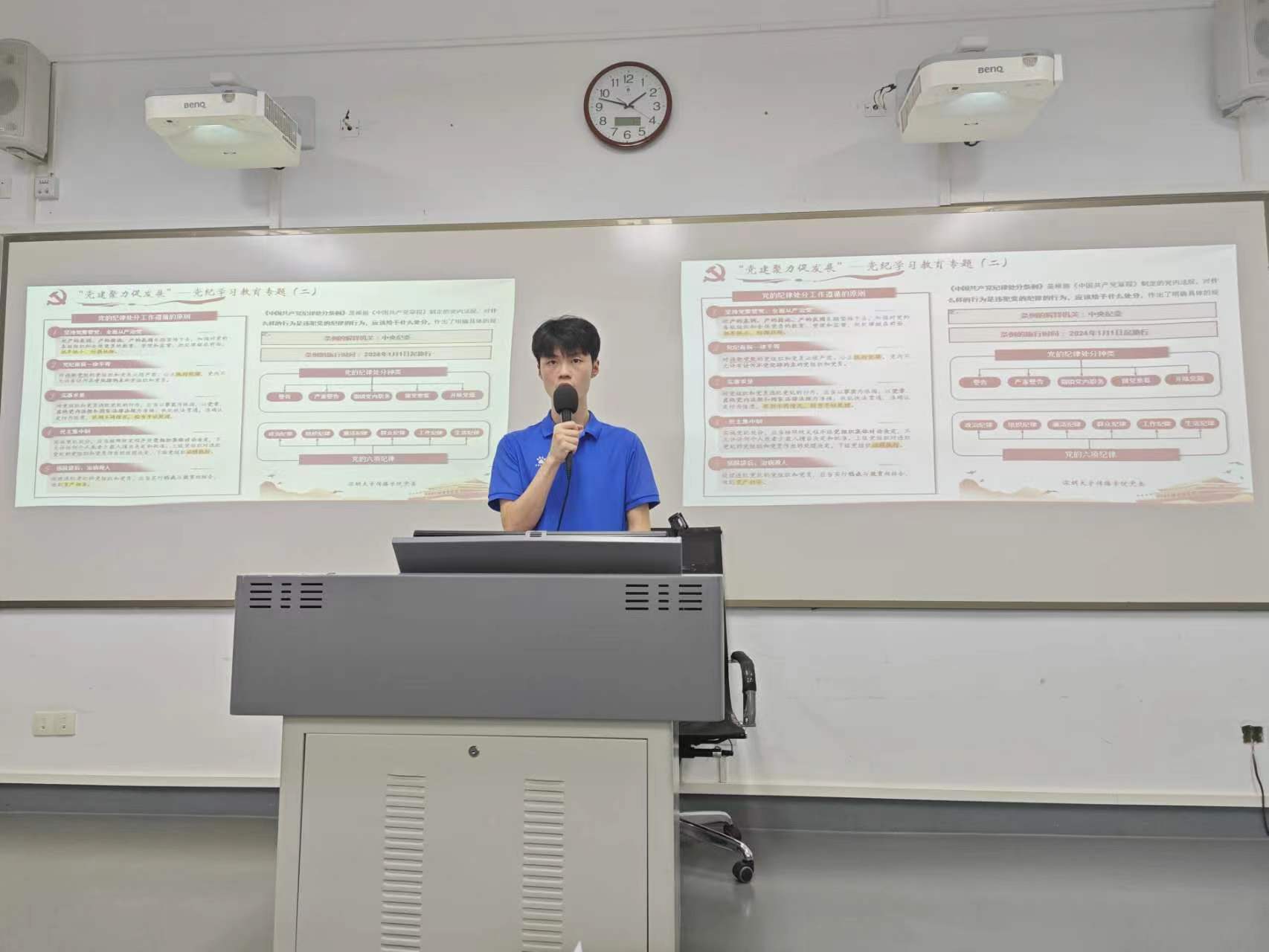 此次党纪学习教育主题活动,不仅是对政治理论知识的深化,也是对思想精神的净化和提升,有助于支部党员更好地理解和把握新时代党的纪律要求。通过原原本本、逐章逐条学《条例》,引导各位学生党员,坚定理想信念,树立敬畏之心,始终保持头脑清醒,保持政治定力,把把纪律学习作为必修课常修课,将党的创新理论作为大学学习的基本任务,把个人理想自觉统一到为中国式现代化挺膺担当。