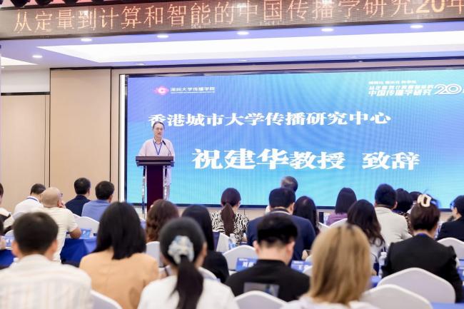 7月13日上午,参会师生聚焦前沿议题、个人学术经历和教育教学展开了自由而深入的讨论与交流,分享了各自独特的见解和经验。而后,香港城市大学传播研究中心祝建华教授发表了题为“20年重续方法缘:在变与不变中追求卓越”的主旨演讲。他从“我(们)这20年”“传播学这20年”和“未来那20年”三个角度深入阐述。祝建华教授详细回顾了自己及其在香港城大指导的20余博士研究生从定量研究演进到计算研究及智能研究的20年历程,介绍了在社会网络抽样、议程竞合理论等领域的研究成果。