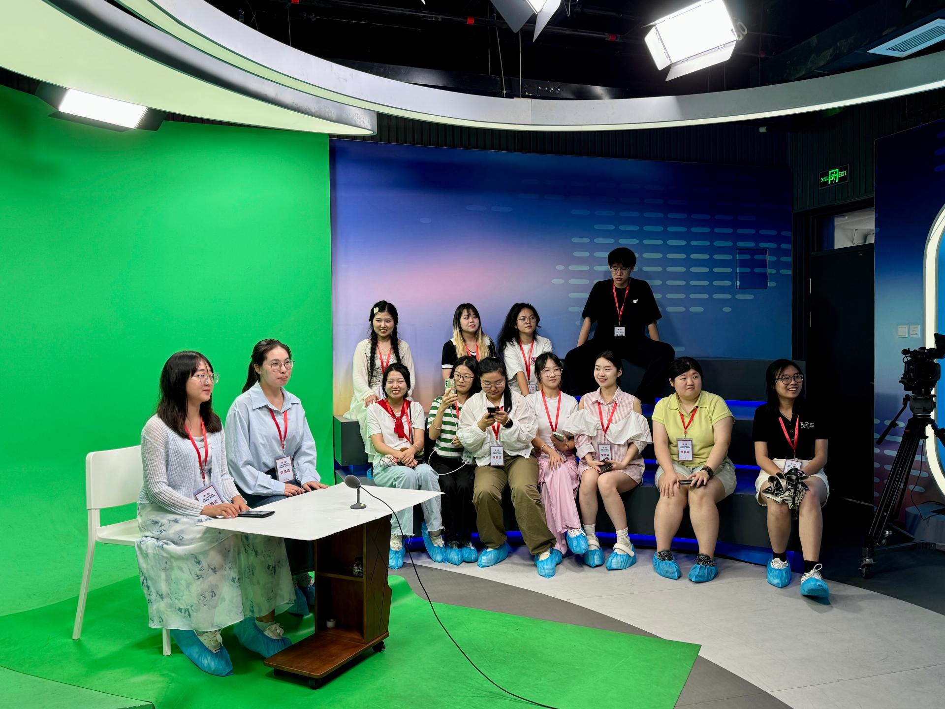 的数字录音实验室、摄影实验室、AI辅助虚拟演播实验室等多个教学实验室。学员们不仅尝试使用专业音频设备录制了自己的专属节目,还亲自体验了一次作为虚拟主播的感觉,将自己置于不同的虚拟环境中进行播报,感受了科技与传媒融合的无限可能。