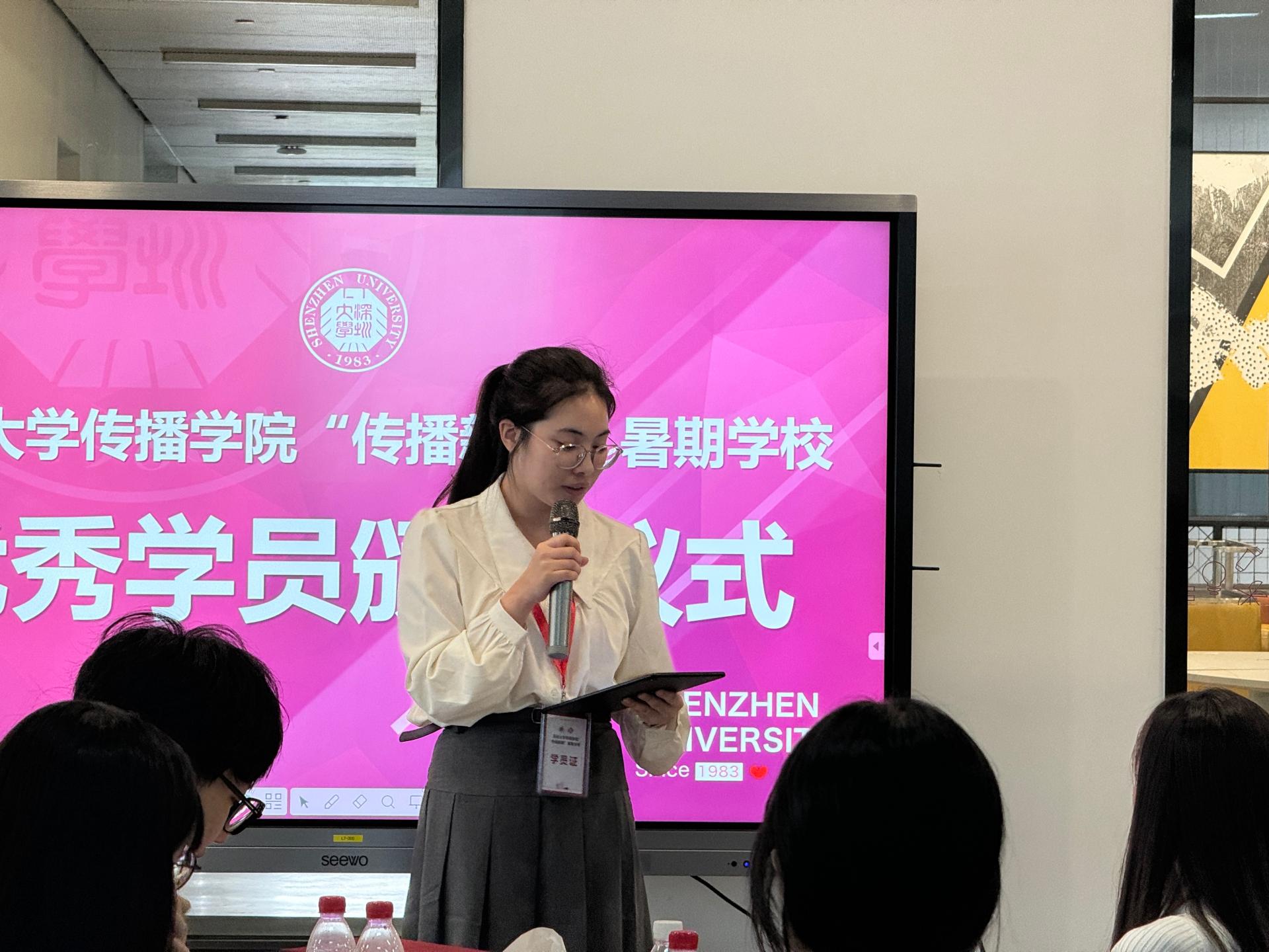杨洸教授为获得“优秀学员”荣誉的同学颁发了证书。华中师范大学的成乐彤同学和郑州大学的陈燕同学,作为优秀学员代表进行了发言。他们表示虽然时间短暂,但收获颇丰,受益匪浅,并对学院精心策划和组织的活动表示了深深的感谢。至此,情色视频