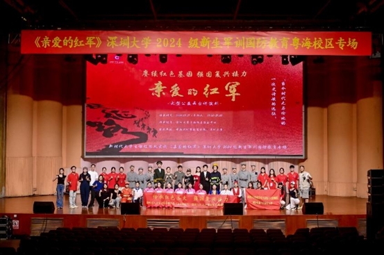 大型原创舞台讲演剧《亲爱的红军》新生国防教育专场在粤海校区演会中心成功举办。来自军训一、二团的1800余名新生在现场见证了红色历史的再现,共上一堂国防教育与人才培养目标深度融合的“大思政课”。