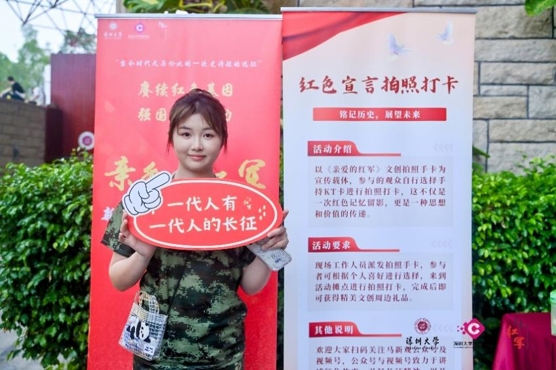 除了闯关游戏深受大家喜爱,气球寄语和拍照打卡的活动形式也引来同学们相继参与。年轻化、互动化的创意模式让同学们发挥想象力和创造力,在小站留下了自己的专属红色记忆。在“梦寐以求”红色气球寄语活动中,许多同学用绘画涂写的方式表达了自己的感受与思考。电子与信息工程学院的新生李晨希谈到:“通过这种活动形式可以认识到很多对长征感兴趣的人,大家可以一起讨论彼此对长征、对红色文化的见解,一起增进对革命精神和时代精神的理解,非常有意义。”