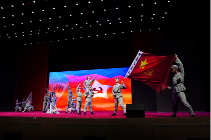 “这是人类历史上一次惊心动魄的军事远征,踏上征程的每一位红军,不管是新入伍的战士,还是拥有军事指挥权的领导者,都成为一部前所未有的英雄史诗的主人公。”在演出中,演员们通过生动的表演和深情的台词,将观众带入了那个烽火连天的革命岁月。他们再现了红军战士不畏艰难、勇往直前的英雄形象,以及他们坚定的革命信念和对理想的执着追求。随着剧情的推进,观众的情绪也随之起伏,仿佛亲身经历了那段波澜壮阔的历史。演出结束时,观众席掌声雷动,久久不息,每个人手中挥舞着红旗,深情共唱《我和我的祖国》,这是对红军英雄们最深切的敬意和缅怀。