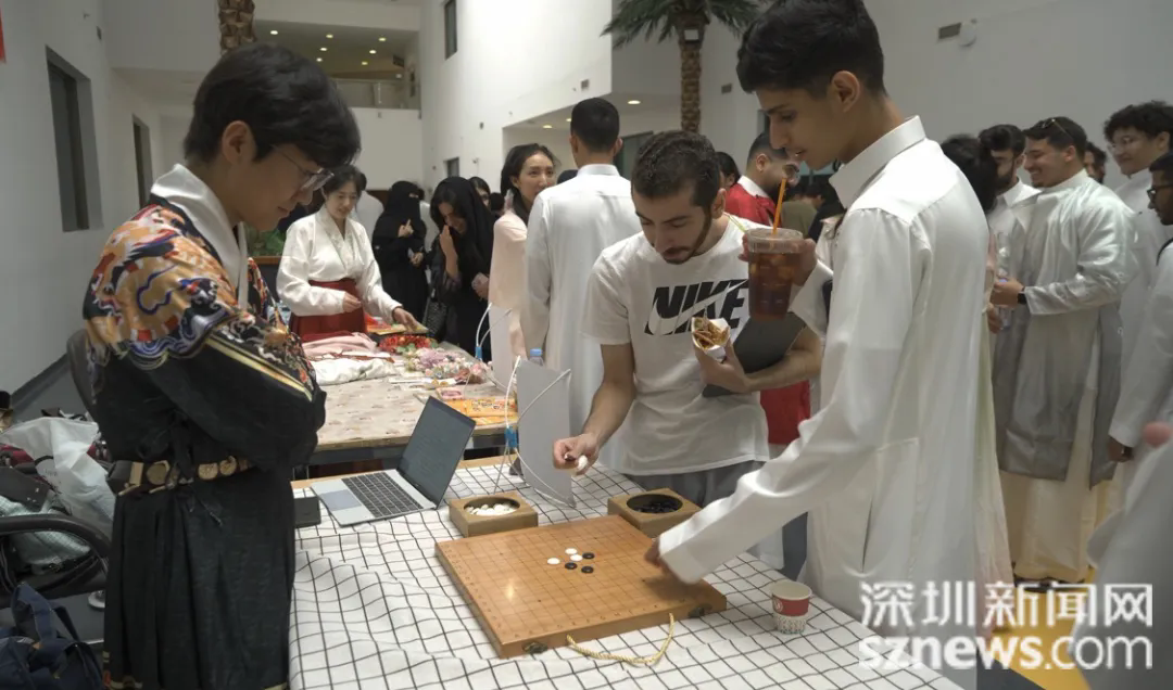 时隔半年,双方的文明对话和回访之旅便来到了苏尔坦亲王大学。实践团成员身着中国传统服饰在学校演播厅内出演,并设置了中华传统文化元素满满的摊位,沙特学生着汉服品茶、弈棋、书画,体验雕版印刷。沙特学子则准备了沙特传统歌舞、阿拉伯咖啡的制作、书法展示、传统货币收藏展等……中沙两校青年热烈互动,碰撞出别样的火花。