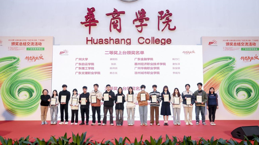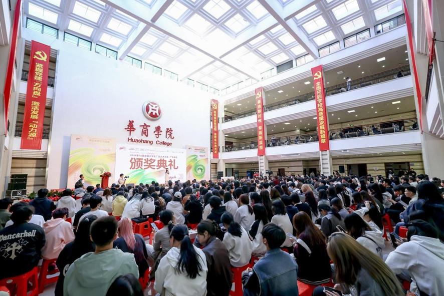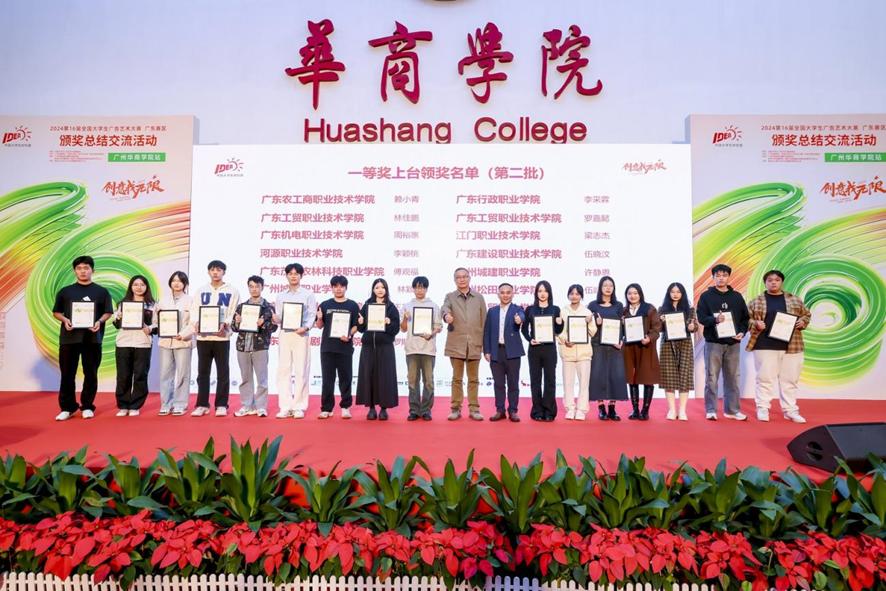 下午15:00,大广赛广东省赛颁奖典礼在广州华商学院中央图书馆中庭广场隆重举行。