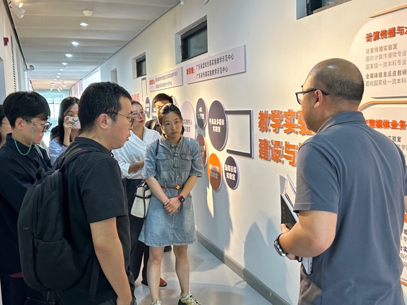 国家级传媒实验教学示范中心,走访数字影像创作实验室、新媒体创新实验基地等,实验中心副主任严嘉伟向来访老师耐心讲解了实验室平台建设、教学运行系统、管理运作体系和运营管理等方面的情况。