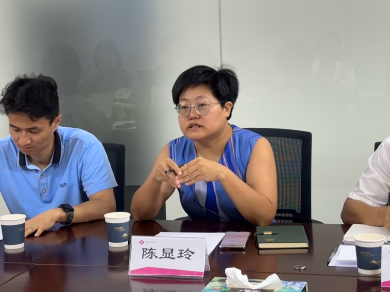 新闻系系主任陈显玲向来访一行老师介绍情色视频