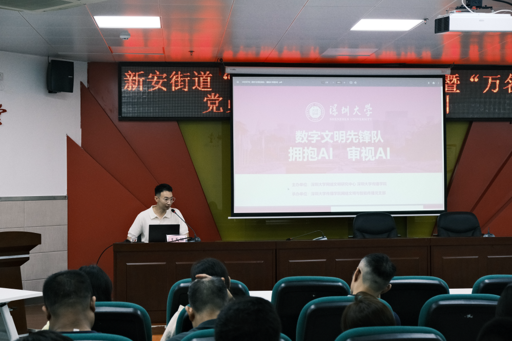 2025年7月2日,数字文明先锋队走进深圳市宝安区新安街道,开启首次AI科普活动。先锋队成员王天伯以《数字文明先锋队:拥抱AI 审视AI》为主题,为社区工作人员和居民带来了一场内容丰富、深入浅出的人工智能通识课。此次活动旨在为社区居民深入普及人工智能知识,提升科学素养,助力其感受科技魅力并拥抱数字文明生活。