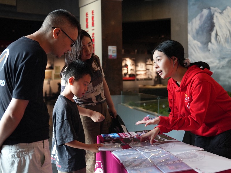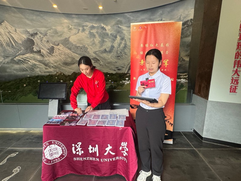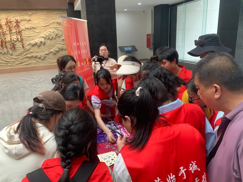 与此同时,小站还迎来四川民族学院“三下乡”实践团的特别访问。实践团的成员们在小站内仔细观摩每一件文创产品,认真聆听每一个文创背后的故事,他们不仅被其精美的设计所吸引,更被背后蕴含的长征精神所打动。这次活动不仅是一次红色文化的传承之旅,更是大中小思政教育一体化理念生动实践的典范,与跨代际的观众群体共同互动。大学生们与中小学生的交流,促进了知识的传递与思维的碰撞;而老少之间的对话,则让红色文化更加深入人心,成为连接过去与未来的桥梁。不同年龄段的观众在共同的红色文化体验中,增进了彼此之间的理解与尊重,共同构建了一个跨越年龄界限的思政教育共同体。