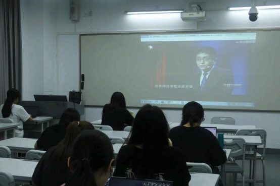 会议伊始,学员们集中学习了《这就是中国》:聚焦二十大——情怀与担当。在视频中,复旦大学中国研究院院长张维为教授和复旦大学中国研究院的特邀研究员邱文平老师作主题分享。张教授以深刻的政治领悟力和独到的视角为学员们讲述了二十大报告中“以人民为中心”的情怀与担当,向学员们讲解了党和政府大力改善民生的治国理念。