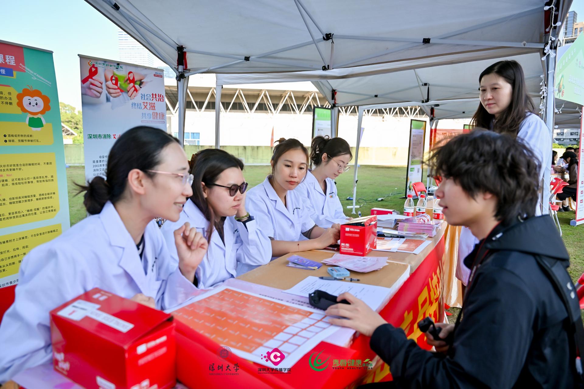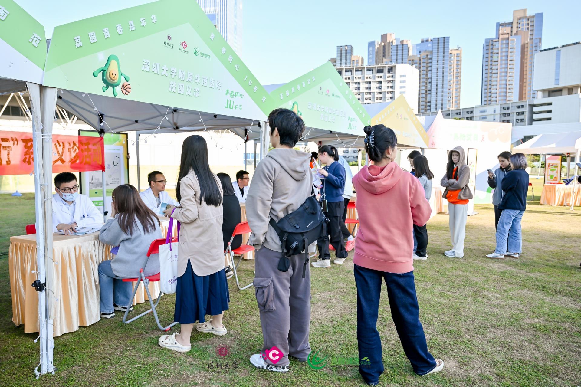 附属华南医院校园义诊板块集结了感染性疾病与肝病科、中医科、消化科、心身医学科、皮肤性病与医学美容科五大科室,专家齐聚一堂,为同学们提供专业、个性化的健康咨询和义诊服务。深圳市妇幼保健院“加速消除宫颈癌——百场公益科普进校园暨千支疫苗捐赠”活动则通过小课堂和免费接种HPV疫苗的福利,普及宫颈癌预防的相关知识,鼓励学生用知识武装自己,用笑声驱散对疾病的未知与恐惧。