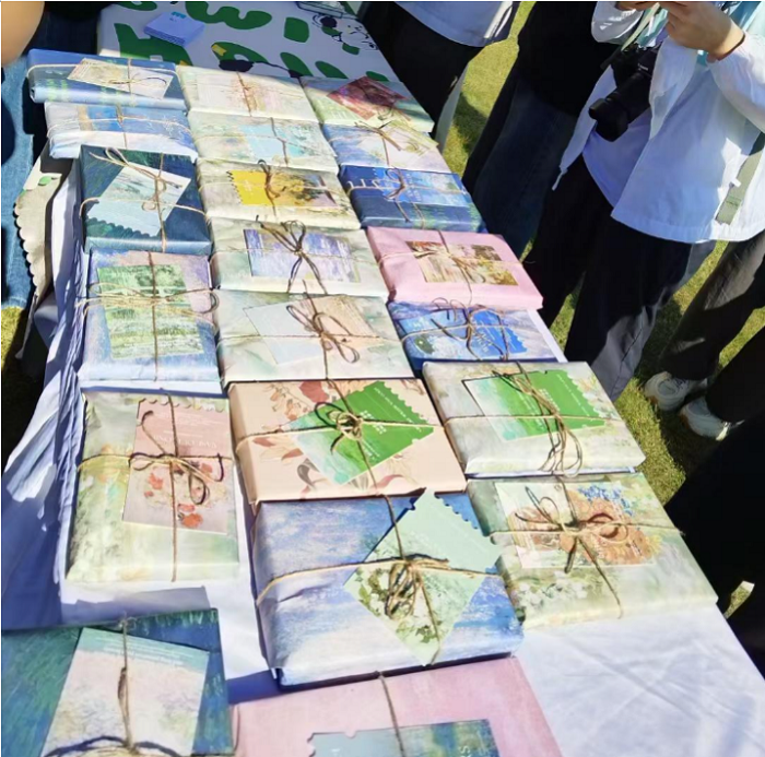 11月8日下午,“义程书旅”系列活动在“SEE 视界·嘉年华”上启动,首站书香义卖活动在桑田广场设置摊位并吸引了不少师生参与。大家只需捐款9.9元,便可以获得一份包装精美的书籍盲盒作为纪念品;另外还有趣味猜书名互动,可赢取书签等小礼品。摊位现场气氛热烈,书籍盲盒深受师生欢迎,不到半个小时,便一扫而空。