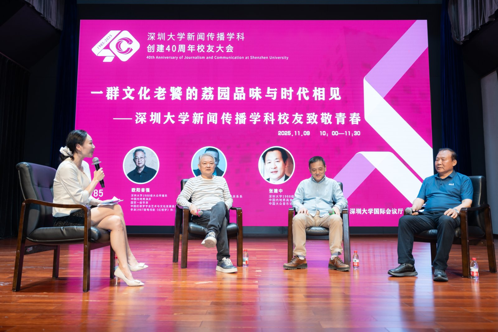 随后,三位校友追忆了二十世纪八十年代荔园所独具的特质——开放、多元、包容,以及孕育浓厚创新创业精神的文化土壤。欧阳奋强以学院前辈教师熊源伟教授的事迹为切入点,指出熊源伟教授当时在国内率先创立了尚属前沿领域的公共关系与影视制作专业,为学生提供了无学科边界的课程体系。进而,欧阳奋强以诙谐的语言回顾了自身在校期间通过实践习得变通能力与创造性思维的成长历程,强调正是荔园这片创新沃土,为其后续从演员跨界至导演的职业转型奠定了关键基础。