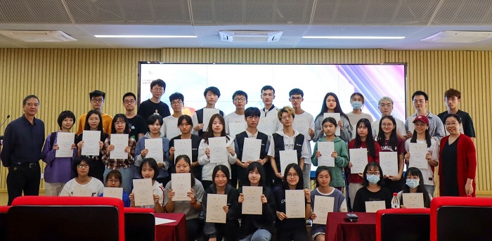 心理辅导中心蔡洁钒老师为同学们颁奖
