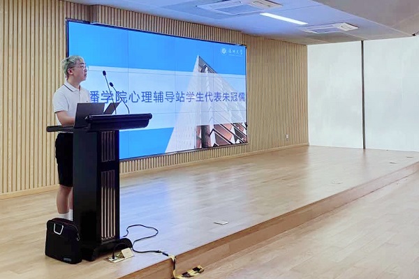 心理辅导站学生代表朱冠儒分享心理建设经验